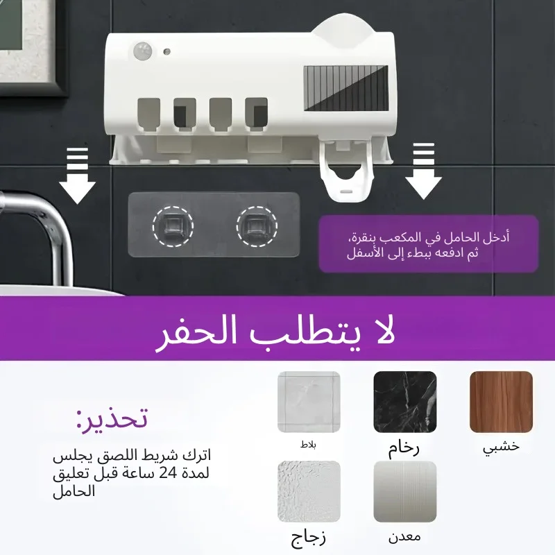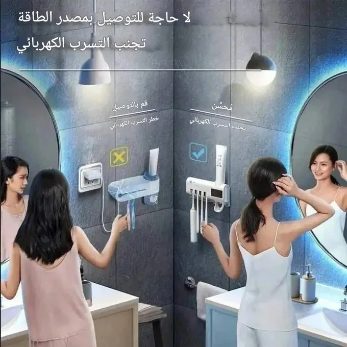 حافظ على صحة عائلتك ونظافة فرش الأسنان مع حامل فرش الأسنان الذكي المصمم بتقنية حديثة تجمع بين التعقيم، الذكاء، والتصميم العصري.